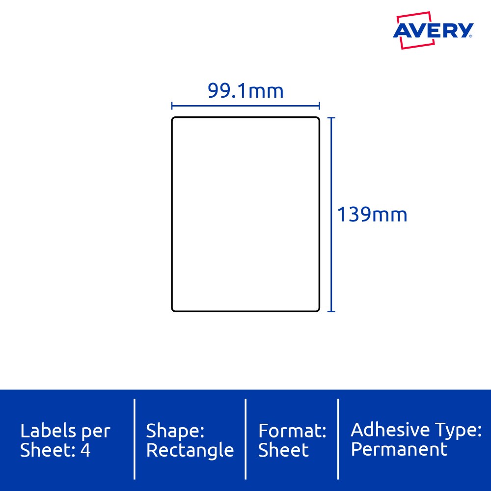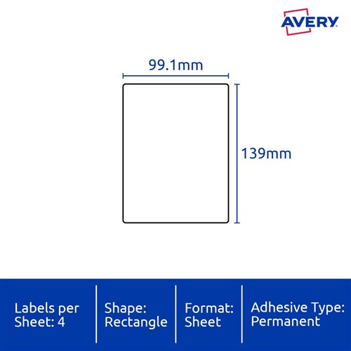 • Size: 99.1x139mm 100 labels, 25 sheets. 4 labels per sheet (4UP).