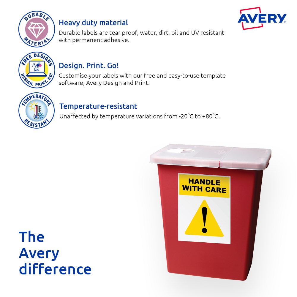• Customise your labels with Avery Design and Print, available at averyproducts.com.au/print.