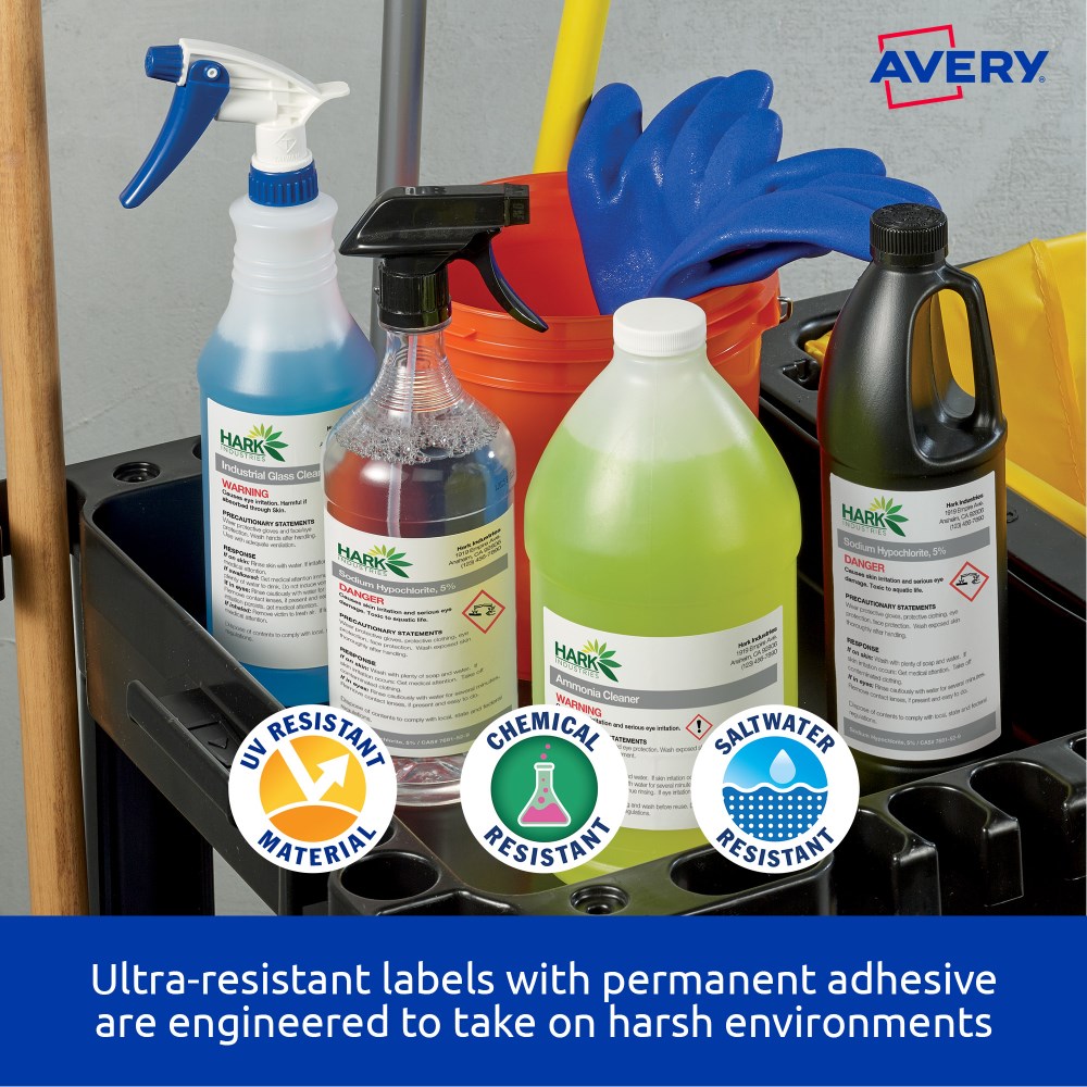 • Ultra-Resistant Labels are saltwater resistant and certified for GHS Chemical Labelling with permanent adhesive and engineered to take on harsh environments.