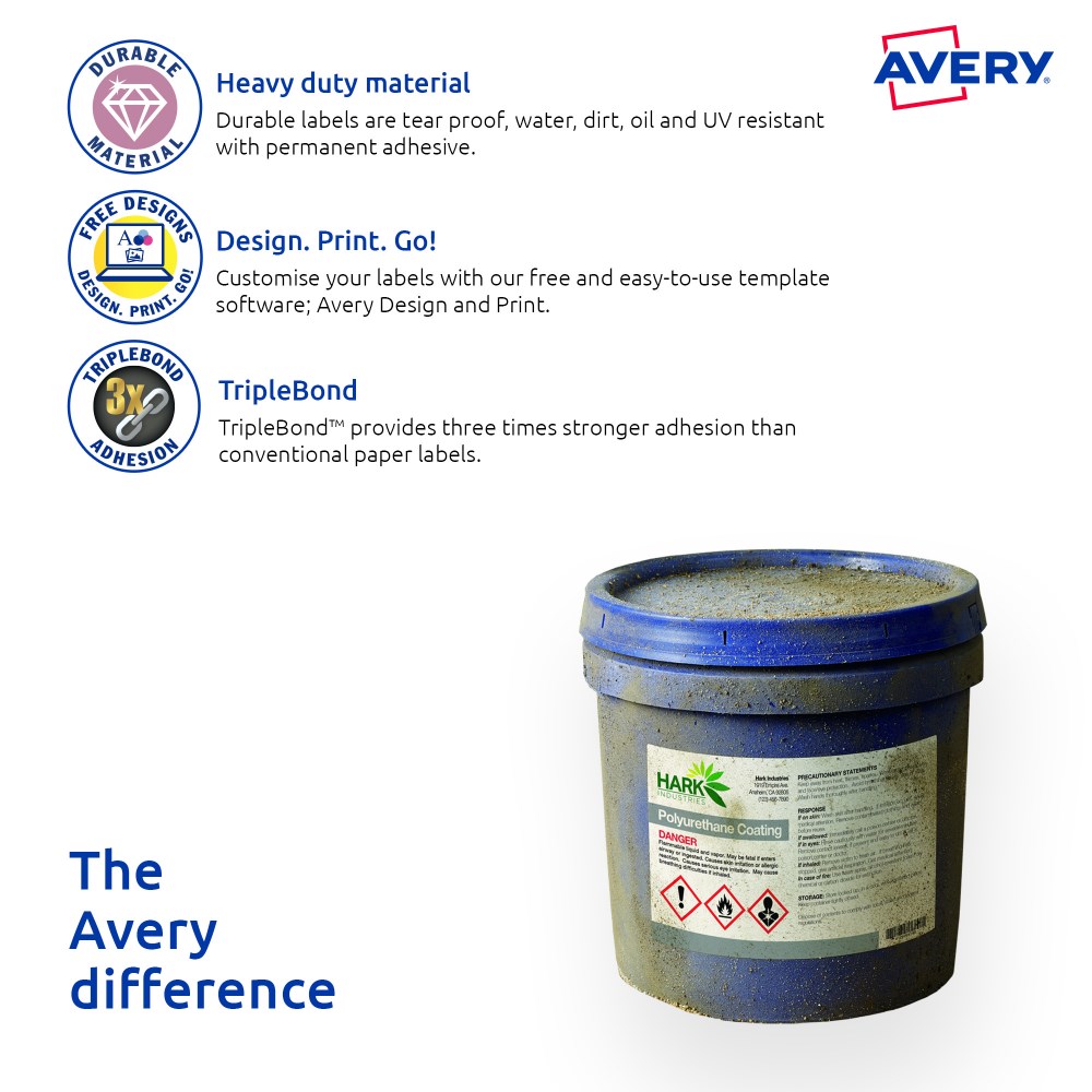 • Customise your labels with Avery Design and Print, available at averyproducts.com.au/print.