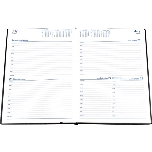 • A traditional casebound diary with a hardcover leatherette look, featuring the elegance of fine white paper.