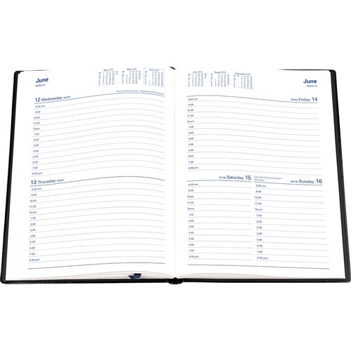 • A traditional casebound diary with a hardcover leatherette look, featuring the elegance of fine white paper.