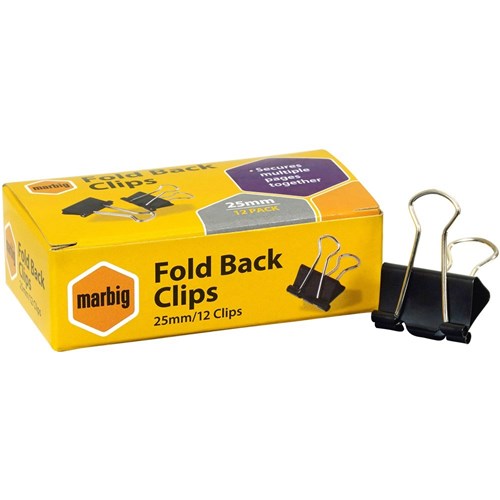 Marbig Foldback Clips 25mm Black Box Of 12