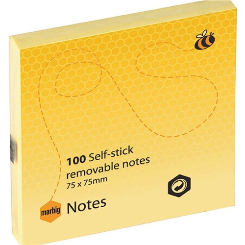 Marbig Repositionable Notes 75 x 75mm Yellow 100 Sheet Pad Pack Of 12
