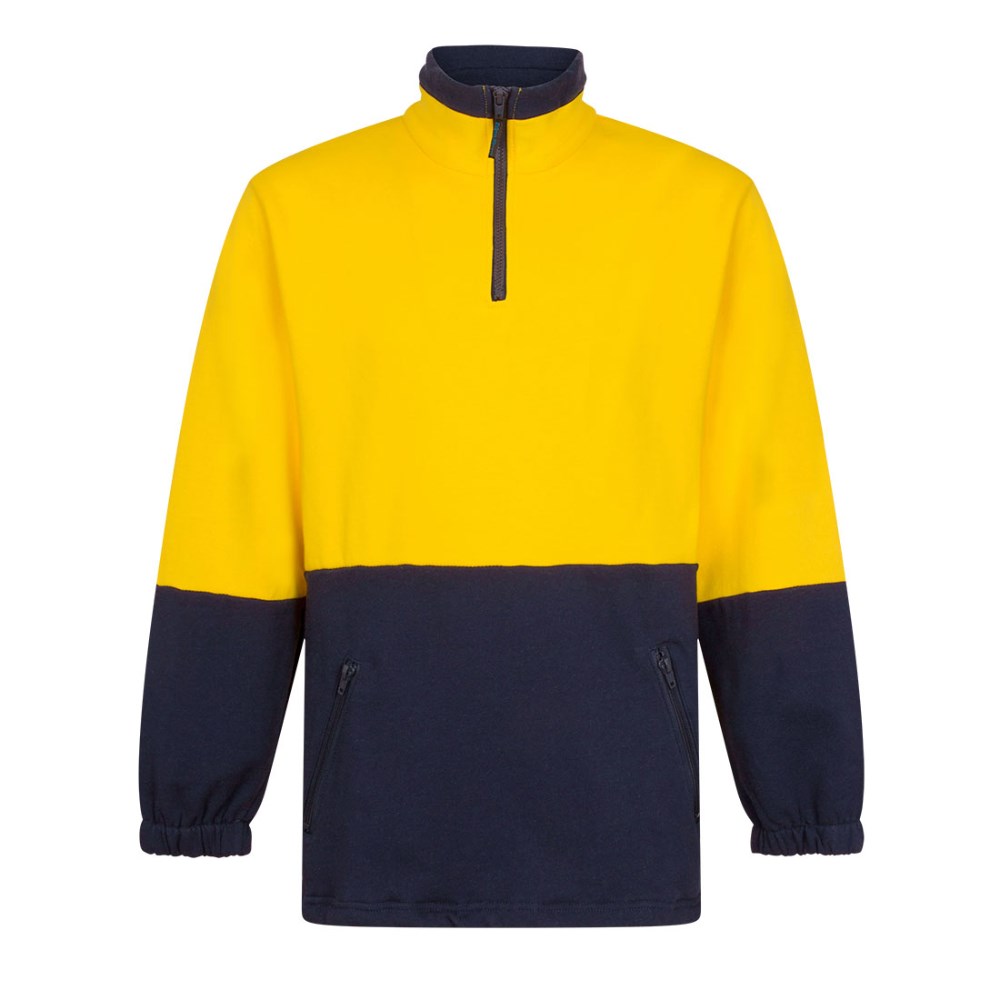 Portwest Hi-Vis Contrast 1/4 Zip Class D Brush Fleece Jumper 4XL Yellow And Navy