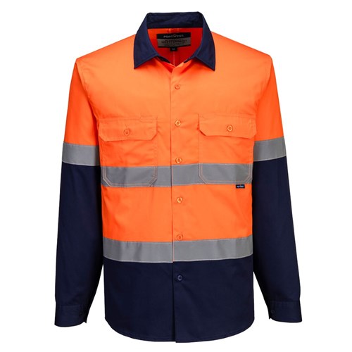 Portwest Industrial Hi-Vis Lightweight Contrast Shirt Long Sleeve 2XL Orange/Navy