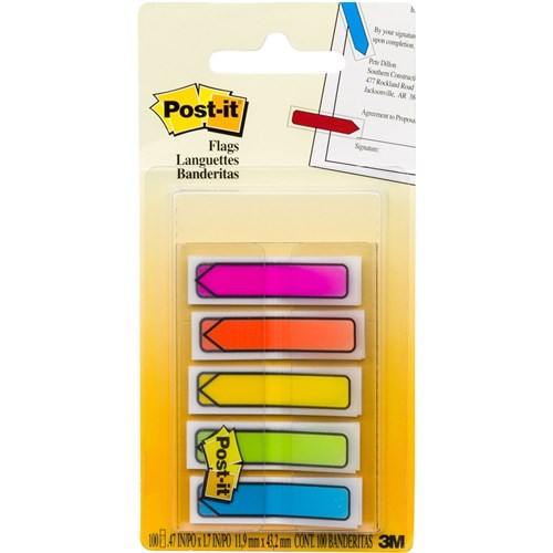 Post-It 684-ARR2 Arrow Flags 12x45mm Bright Blue Green Orange Pink Pack of 100