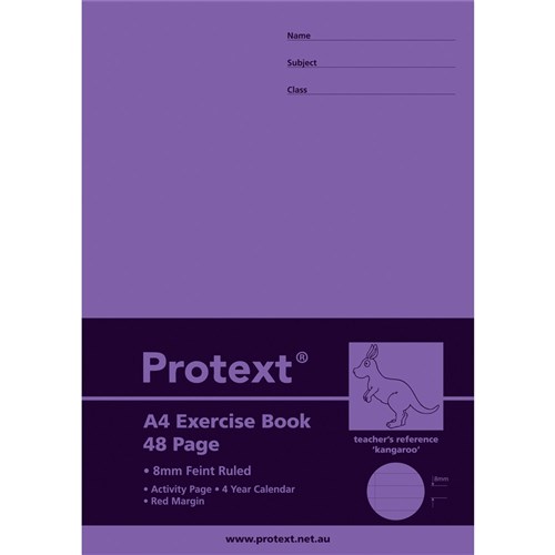 Protext Exercise Book A4 8mm Ruled 70gsm 48 Page Red Margin Kangaroo
