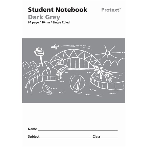 Protext Student Note Book 250 x 175mm Single Ruled 10mm 64 Page Dark Grey