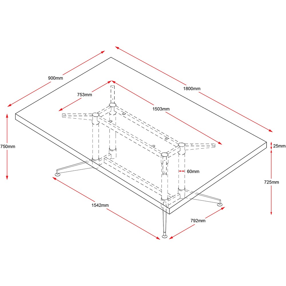 Rapidline Typhoon Boardroom Table 1800W x 900D x 750mmH Beech Top Black Frame