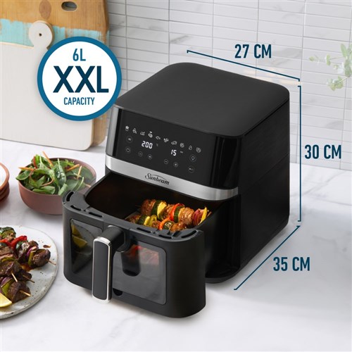 • Extra large 6 litre cooking capacity in a compact air fryer.