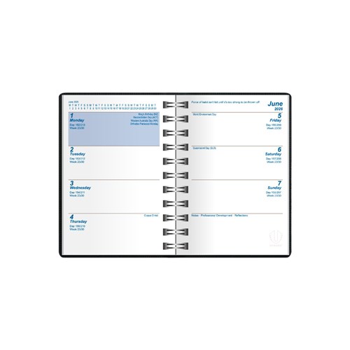 Upward Nurse's Diary A7 Week To View Black